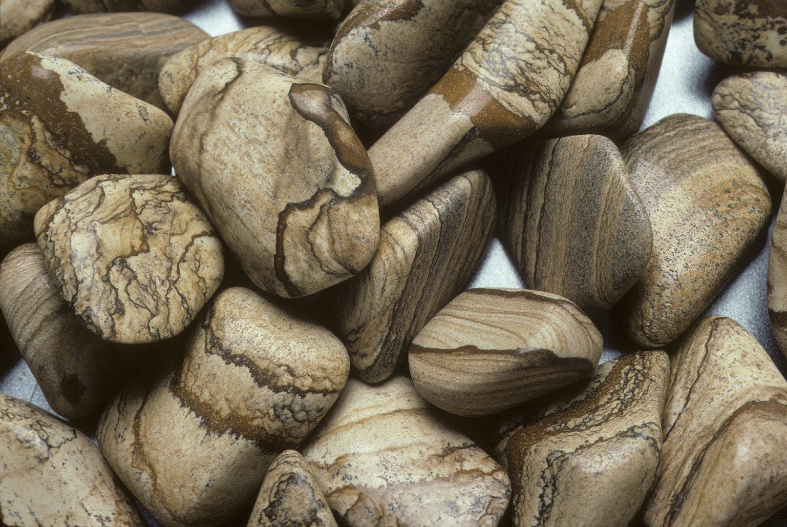 Jaspe Paisaje generalmente contiene tonos crema, marrón, gris, naranja y otros tonos tierra, y se caracteriza por sus patrones de paisaje únicos.